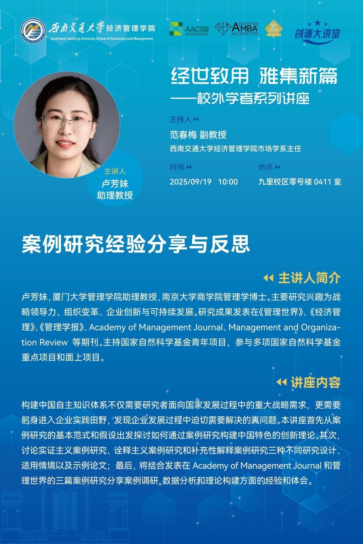 Speaker ProfileLU Fangmei is an Assistant Professor at School of Management, Xiamen University. She holds a Ph.D. in Management from Nanjing University Business School. Her primary research interests include strategic leadership, organizational change, corporate innovation, and sustainable development. Her work has been published in journals such as Management World, Business and Management Journal,...