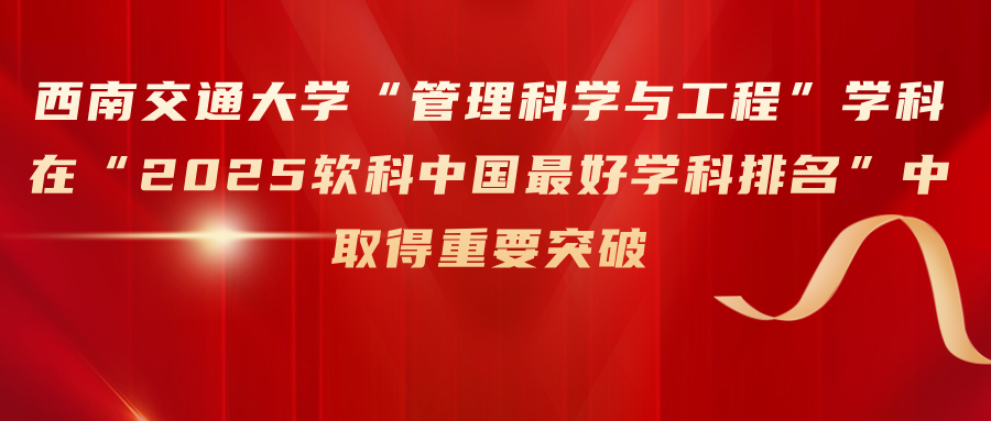 据权威高等教育评价平台“软科”平台最新发布的“2025软科中国最好学科排名”显示,西南交通大学“管理科学与工程”学科进入全国前9%、跻身A-行列...