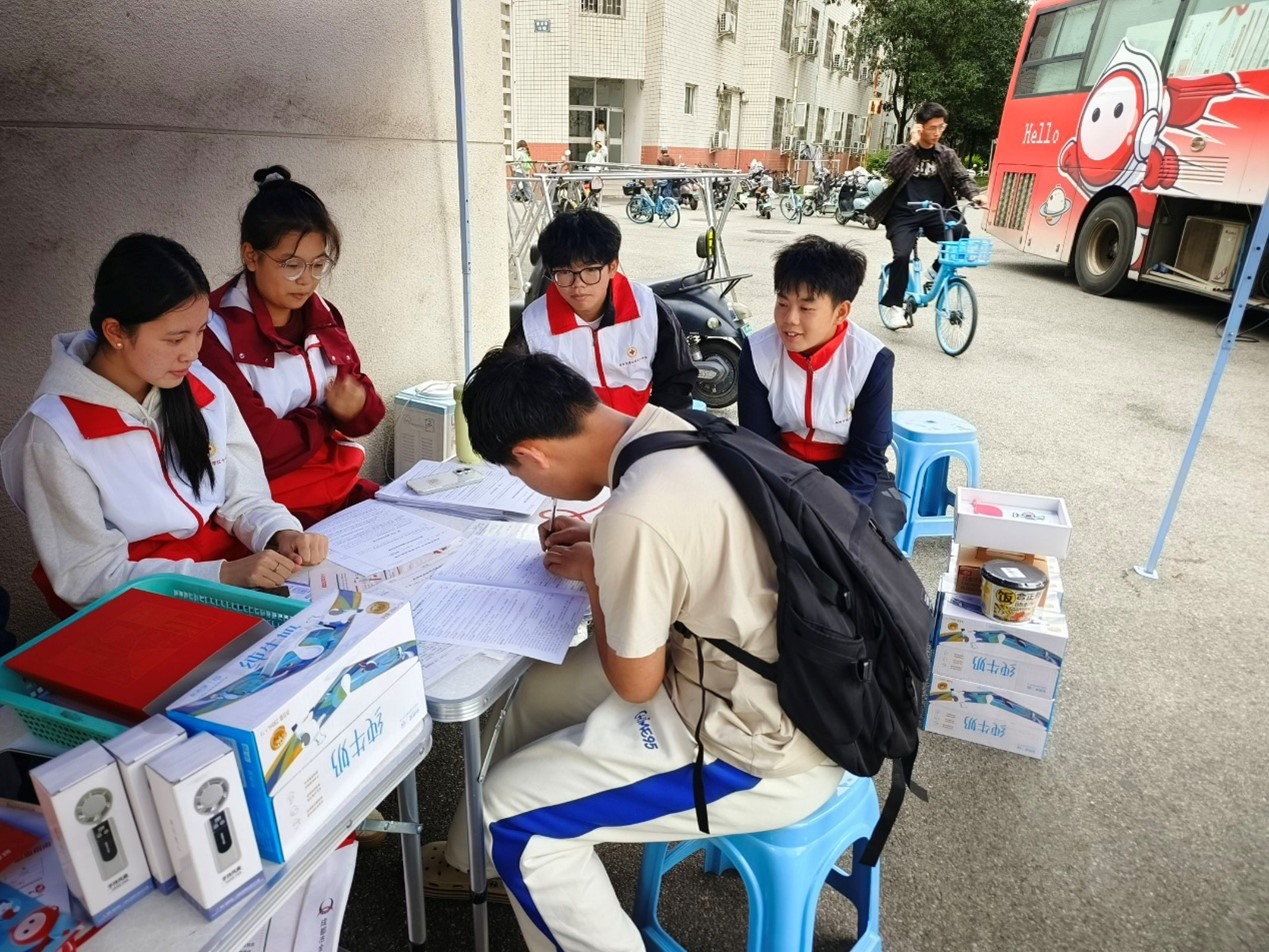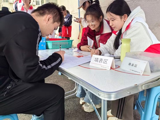活动当天,身着红白色志愿服的志愿者们分工明确、热情服务,成为现场亮眼的“红色风景线”。在入口处,志愿者主动上前迎接前来献血的师生,耐心引导大家填写健康征询表,细致讲解表格填写要点;在献血知识科普区,志愿者们围绕“无偿献血对身体的影响”“临床用血的制备流程”等内容,为师生开展详细讲解;考虑到部分师生对献血存在紧张情绪或认知误区,志愿者们还特别设计了“献血小贴士”系列海报,用生动的漫画形象展示献血前的饮食准备、献血中的配合技巧及献血后的护理方法,让专业的健康知识变得通俗易懂,有效缓解了师生的顾虑。