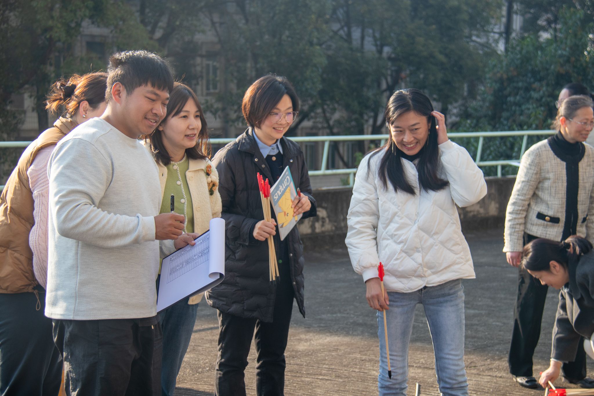 本次活动以学系为单位比拼,老师们纷纷上手尝试,瞄准、投壶、落壶的动作连贯又不失趣味。有的老师精准投掷,引来阵阵喝彩;有的老师虽初尝失利,却迅速调整状态,越投越稳,现场加油声、欢呼声此起彼伏。大家在轻松愉悦的氛围中切磋技巧、增进情谊。