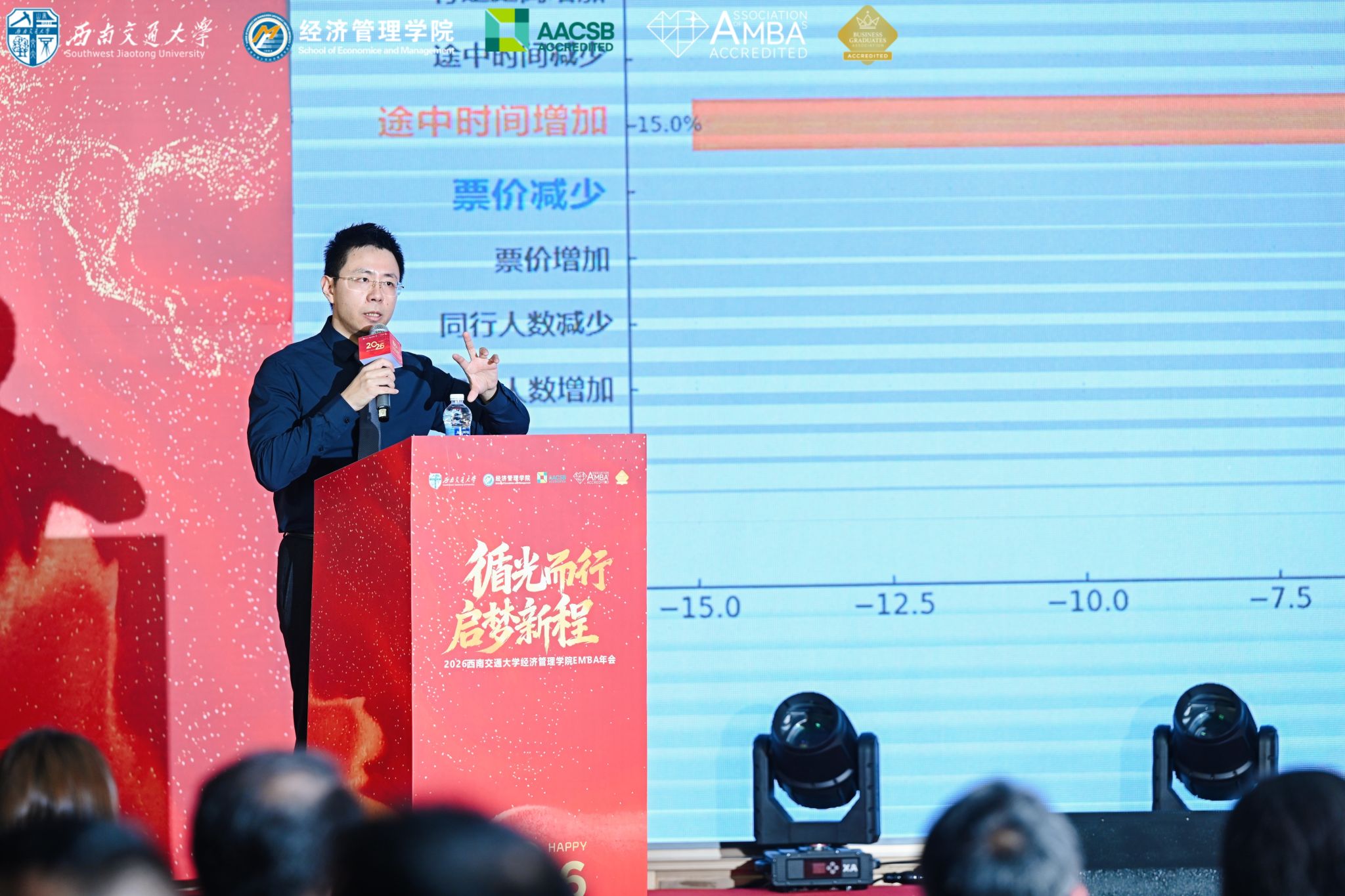 “E生课堂”延续了为EMBA校友搭建持续学习平台的优良传统。经济管理学院院长韩科受邀登台,作为学院发展的引领者与科研带头人,他围绕重大战略工程协同治理、产教融合创新发展等主题,拆解学院科研团队在eVTOL市场前景、低空文旅商业模式等特色研究中的实践经验,其真知灼见既为校友精准把握发展趋势、破解运营难题提供了新思路,也充分彰显了学院“交通+管理+科技”的特色育人理念,为整场年会注入深刻的思想力量。