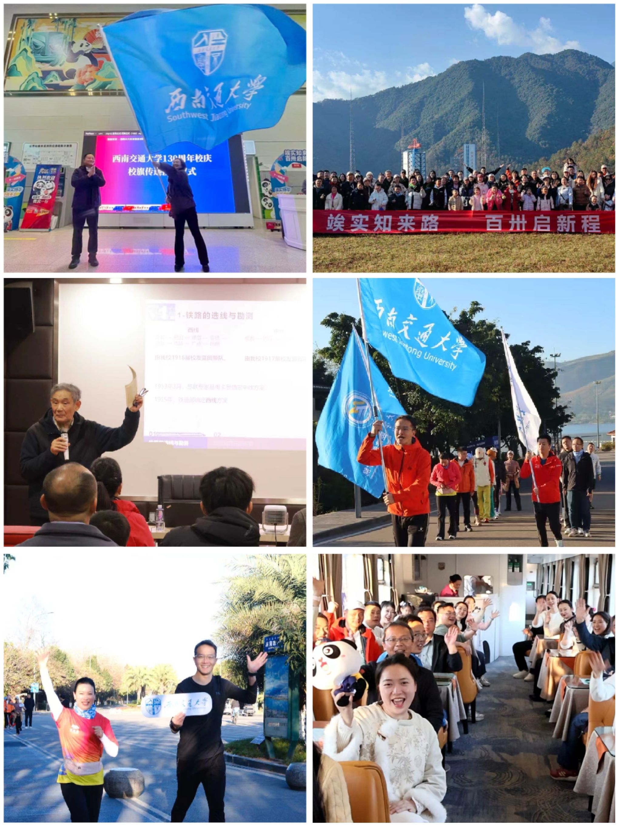 此次活动不仅是高校、铁路、文旅三方跨界融合的创新实践,更是一场具有深刻教育意义与时代内涵的文化传承行动。依托“安逸号”熊猫专列这一铁旅融合载体,校友们沿成昆铁路行进,先后走进成昆铁路展览馆、西昌卫星发射基地,深入邛海湿地、参与彝族文化体验,在行走中感悟历史,在交流中凝聚共识。活动特别设置建校130周年全球交大人校旗传递活动、“成昆线上话当年”微讲堂、共写《致母校的一封家书》等环节,让跨越时空的精神对接在情感共鸣中自然生发。