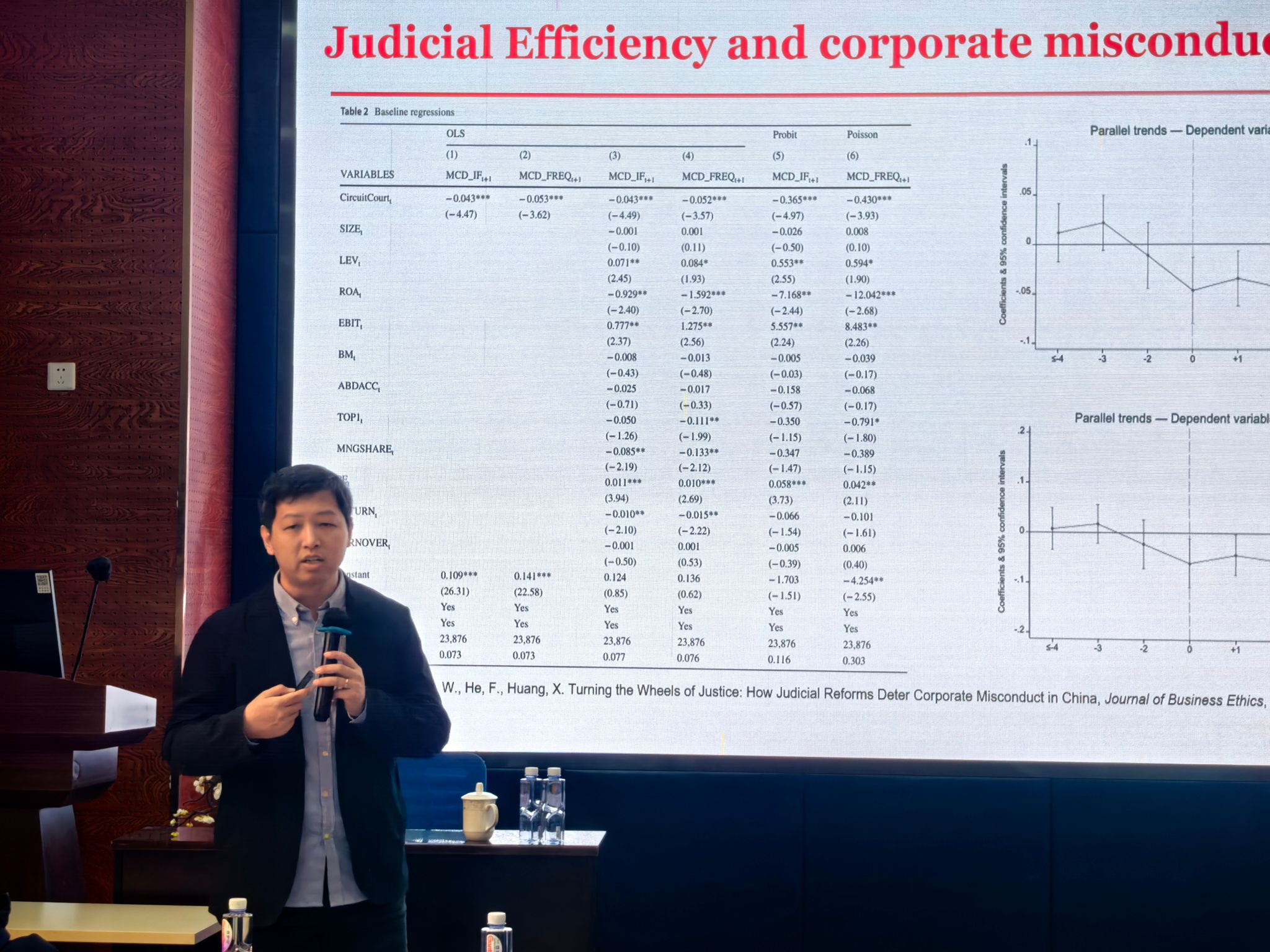 总体而言,提升司法效率显著促进了企业的可持续绩效。何教授的研究结果凸显了制度环境,尤其是司法效率的提升在企业可持续发展战略中的关键推动作用。加深了司法效率对企业行为影响的理解,通过引入数字司法视角,丰富了ESG决定因素的文献,并通过考察司法系统改革的微观层面行为影响,为法律与金融文献做出了贡献。